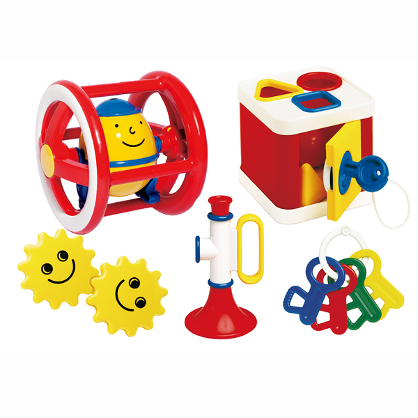 ねんねの頃は、ボックスの中にブロックを入れて転がすなどして視覚・聴覚を刺激し、その後プルトーイとして遊んでいけばハイハイやあんよの応援にもなります。