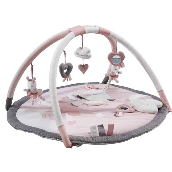 トレンドのグレーカラーとピンクのコンビネーションがキュートな、SAUTHON(ソトン)のラウンド型プレイマットです。