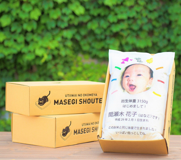赤ちゃんの体重と同じ重さのお米がお届けされます(4000gまで)。