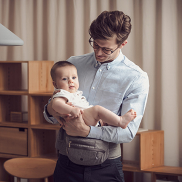 肩・腰・お腹の3点で体を支え、優しい構造でパパ・ママの体への負担が軽減されるヒップシートです。