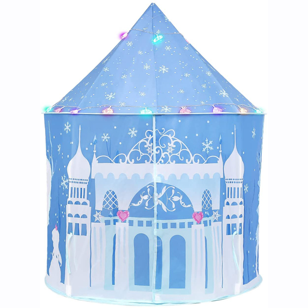 - 3歳の娘がディズニープリンセス好きなので購入。とても喜んでいます。1歳の息子も楽しんで入っています。LED照明をつけると、本当に綺麗で夢のような空間が誕生します。入口はカーテンタッセルのように、紐でまとめておくことができるし、マジックテープで入口を閉めることもできます。