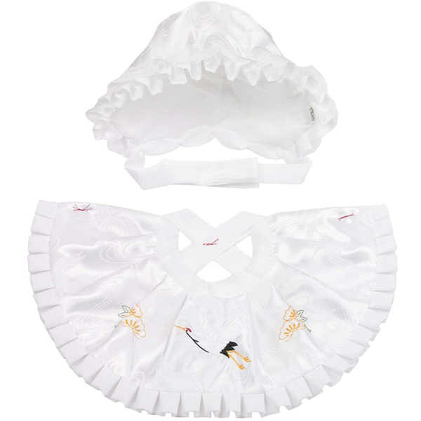 赤ちゃんには肌着の上に白羽二重の着物を着せて、おめでたい絵柄の羽織(掛け着)を羽織らせます。