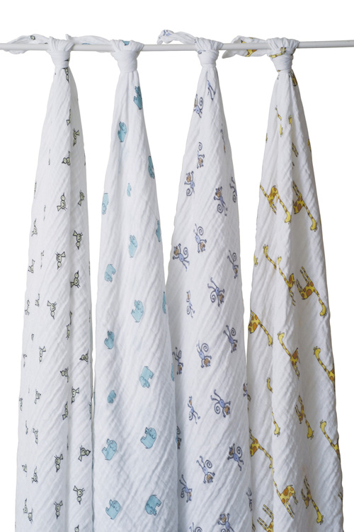 おくるみの素材には、一年を通して赤ちゃんを快適な状態に保つため多くの種類が揃っています。